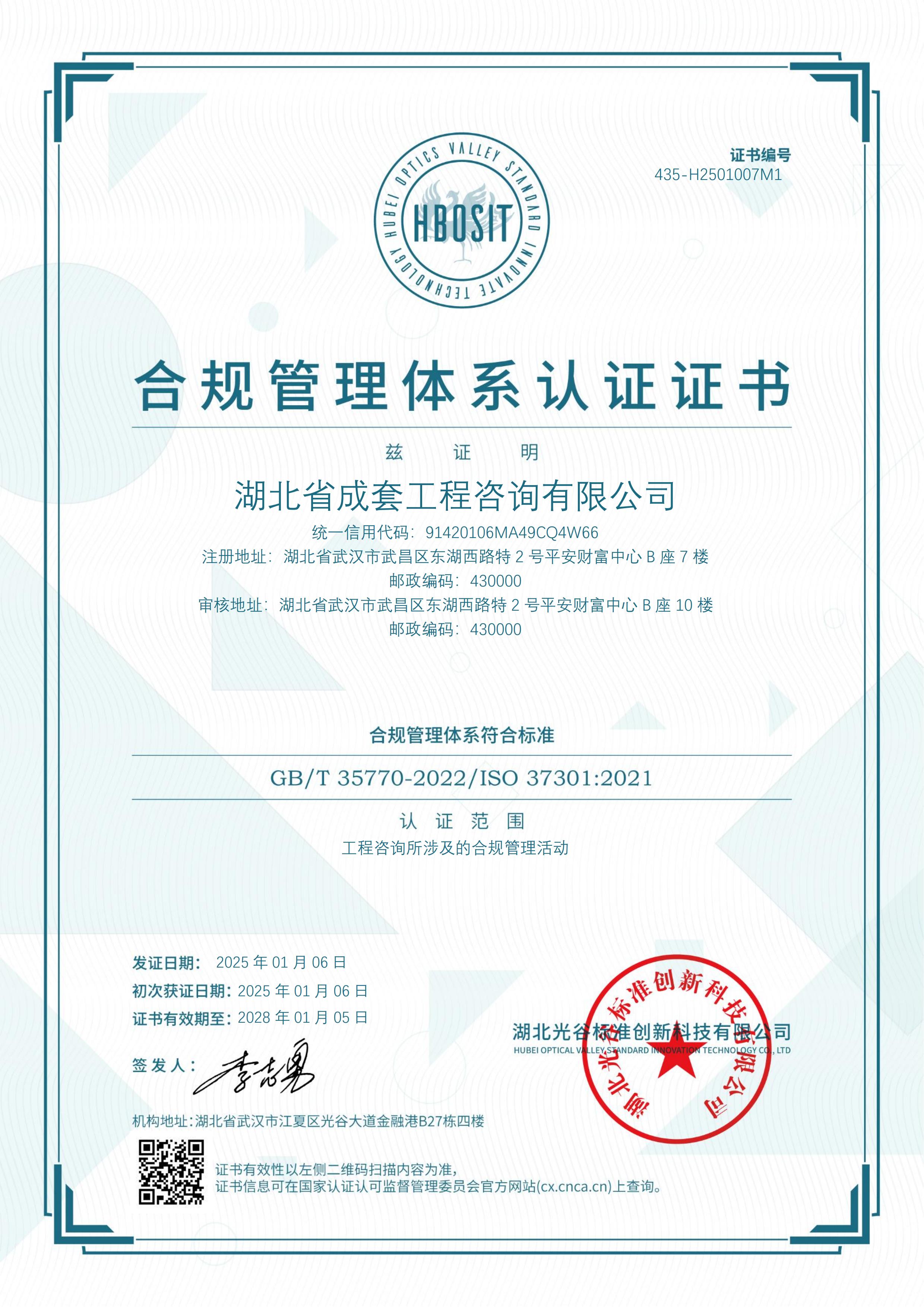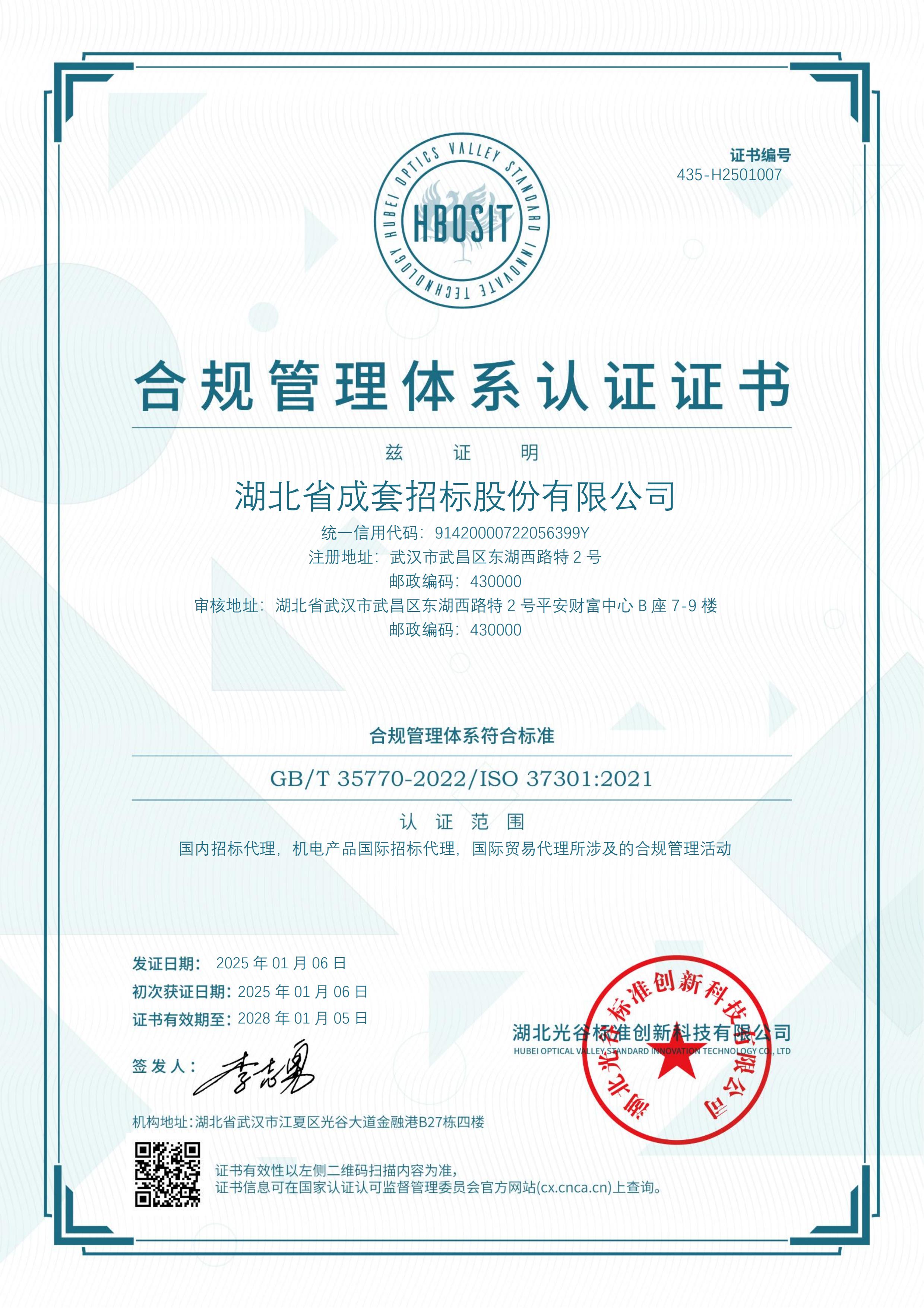 在復雜多變的市場環(huán)境中,企業(yè)的合規(guī)經營是贏得客戶信任、實現(xiàn)可持續(xù)發(fā)展的關鍵。省成套招標公司將以此次認證為新的起點,不斷優(yōu)化和完善合規(guī)管理體系,保持管理體系的先進性和有效性,以更高的標準為客戶提供優(yōu)質、可靠的服務,確保公司在高質量發(fā)展道路上行穩(wěn)致遠,促進行業(yè)健康有序發(fā)展。